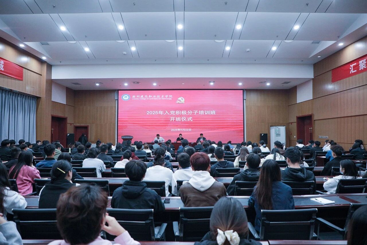 为扎实做好入党积极分子的培养教育工作,提高入党积极分子的思想政治素养,确保党员发展质量,9月22日下午,林州建筑职业技术学院党委于行政楼一楼报告厅召开2025年入党积极分子培训班开班仪式。党委书记温亚丽,纪委书记、监事会主席赵伯程,党委副书记、副校长郭鹏,党务工作部部长申振苹出席会议,各支部书记、支委工作人员、党务工作部全体人员及入党积极分子参加会议。开班仪式由党委副书记、副校长郭鹏主持。