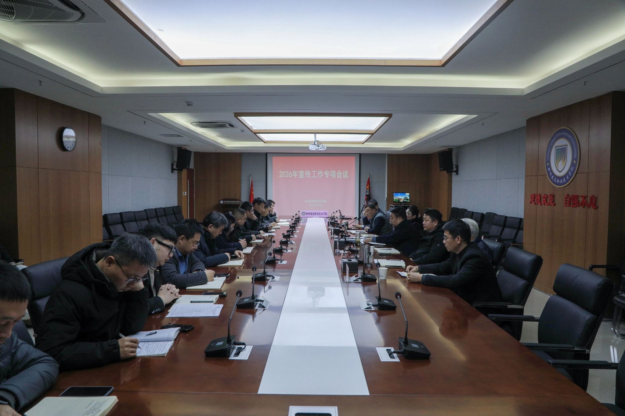 1月7日,林州建筑职业技术学院2026年宣传工作专项会议在学校会议室召开。校长张清华出席会议并讲话,全体在校校领导、各单位负责人员参加会议,会议由党委副书记、副校长郭鹏主持。